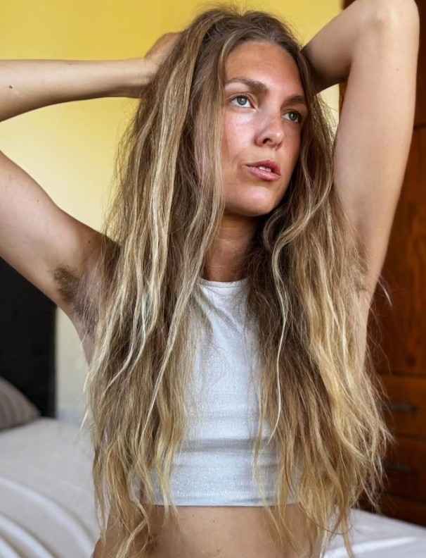 הצעד הדרמטי ביותר בתהליך היה ההחלטה בתחילת 2024 להפסיק לגלח את שיער הגוף ולתת לשיער בתי השחי והרגליים לצמוח בחופשיות. היא מתארת את החוויה כ״ניסוי״ נפשי וחברתי: מצד אחד פעולה פשוטה של “לא לעשות כלום”, ומצד שני מאבק יומיומי במחשבות פנימיות, בבושה ובסטיגמות חברתיות שרואות שיער גוף נשי כלא היגייני או דוחה.